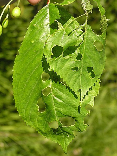 Na listech se objevují žluté skvrny, které se postupně slévají. Žilky listů zůstávají stále zelené. Na spodní straně listů jsou okem vidět drobní pomalu se pohybující roztoči a také se zde vytváří jemná pavučinka. Vyskytuje se hlavně v suších a teplejších letech.
